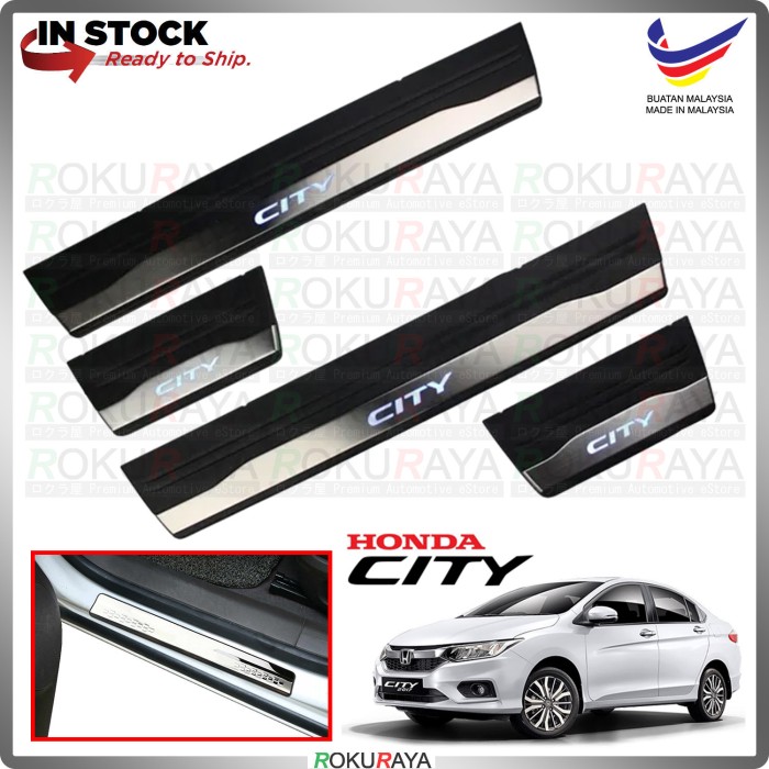 [BESI with LED] Honda City GM6 2014-2019 Stainless Steel Chrome Side Sill Kicking Plate Garnish Moulding Cover Trim Car Accessories